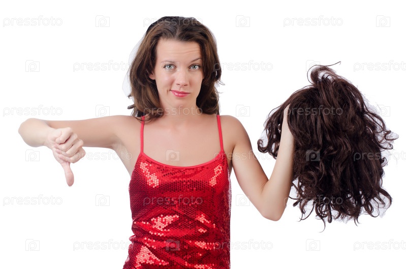 Женщина выбирает парик