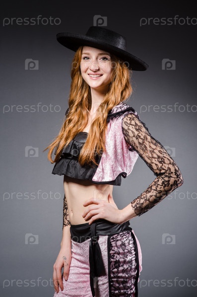 Рыжая женщина в костюме тореадора