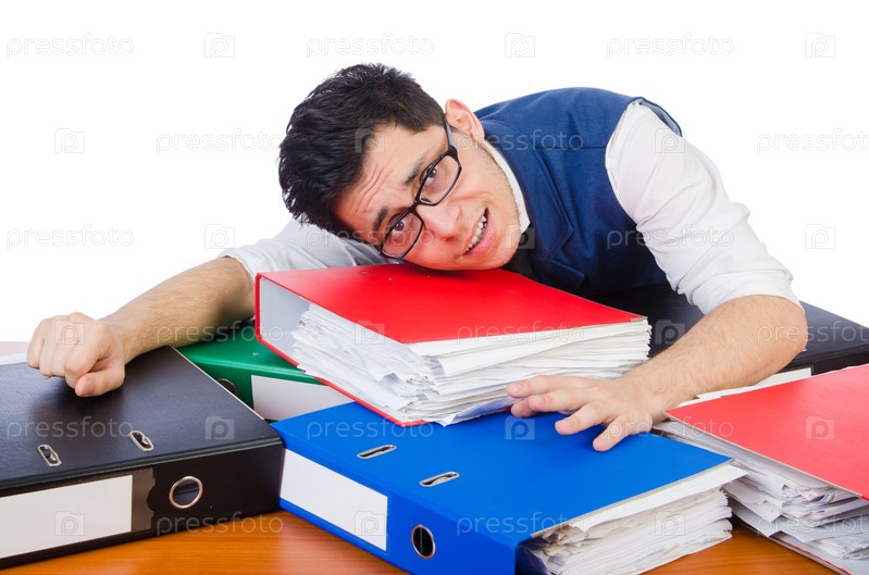 Человек с большим количеством папок