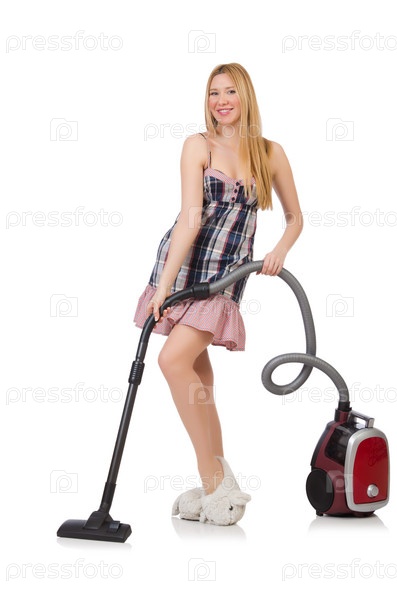 Молодая женщина с пылесосом