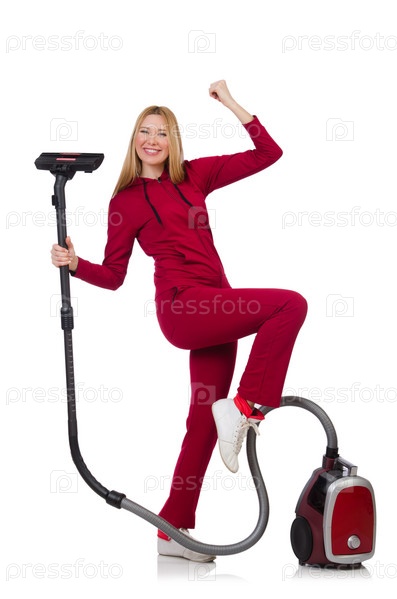 Молодая женщина с пылесосом