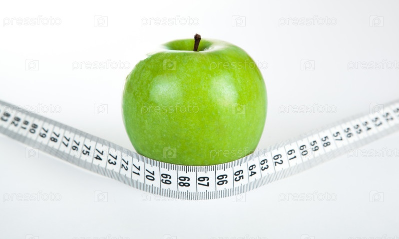 Зеленое яблоко с измерительной лентой