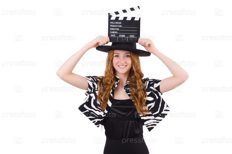 Молодая женщина с хлопушкой