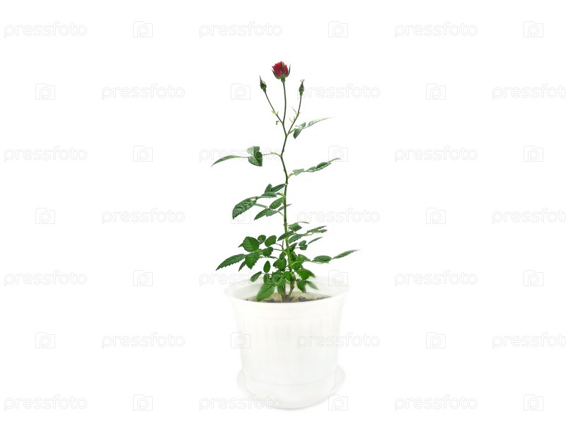 Красная роза в горшке