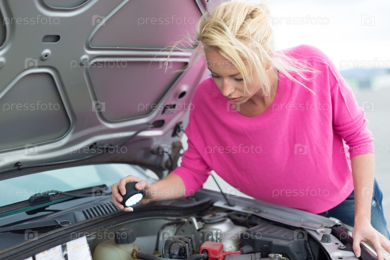 Женщина ремонтирует автомобиль