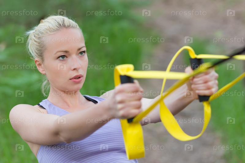 Женщина тренируется с ремнями