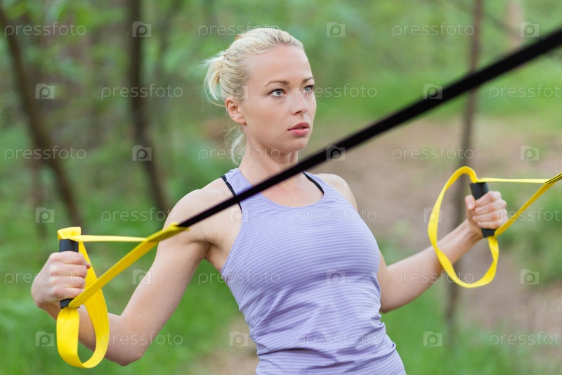 Женщина тренируется с ремнями