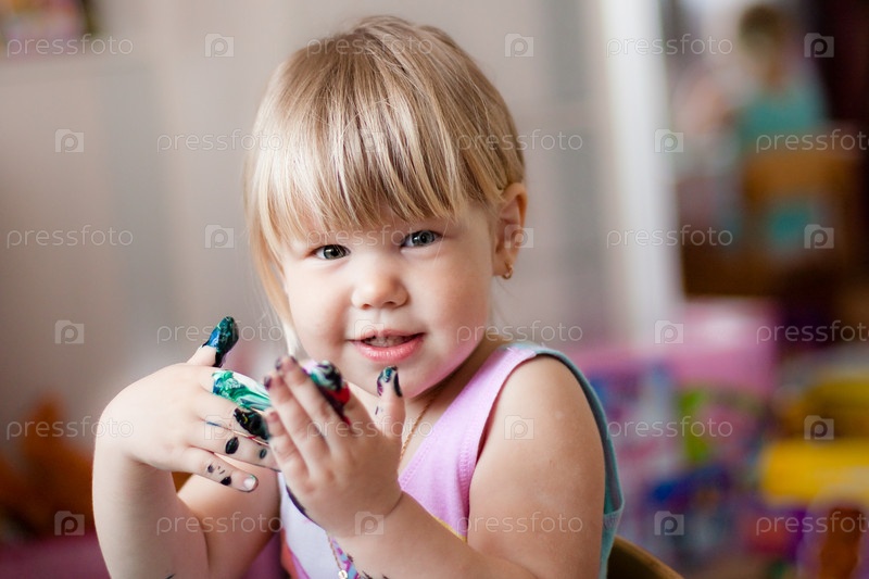 Маленькая девочка с перепачканными краской руками