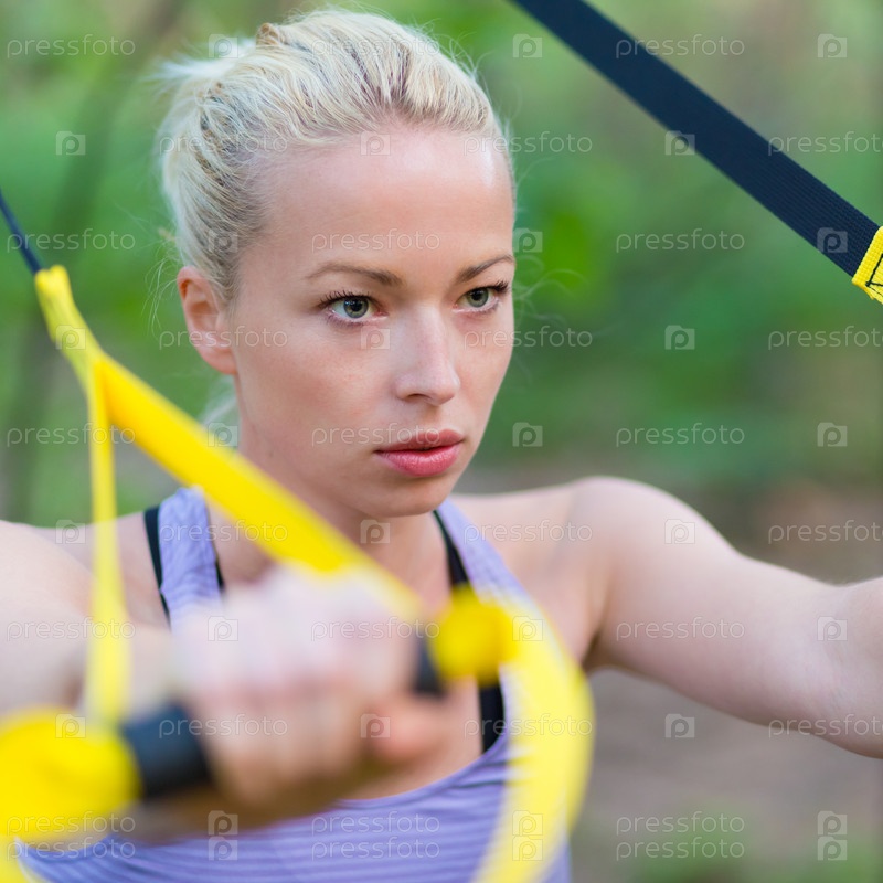 Женщина тренируется с ремнями