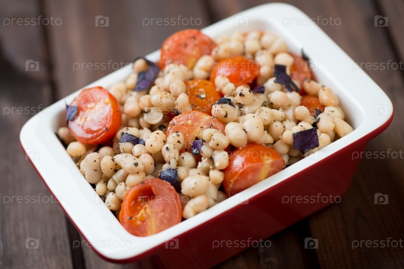 Запеченная фасоль с помидорами черри