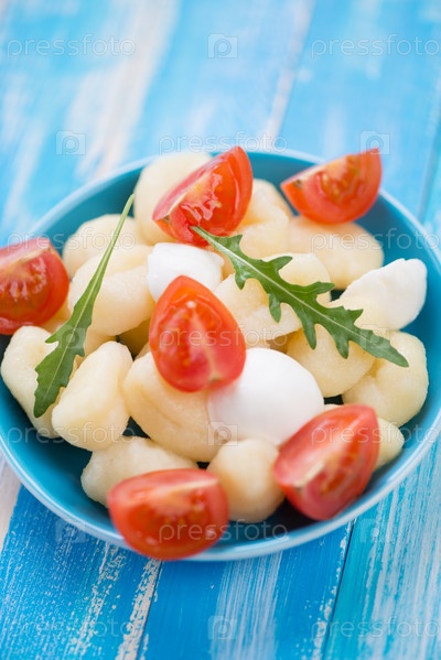 Ньокки с моцареллой, помидорами черри и рукколой