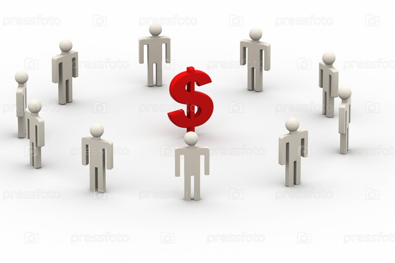 Люди вокруг знака доллара