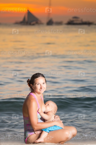 Ребенок с матерью на пляже