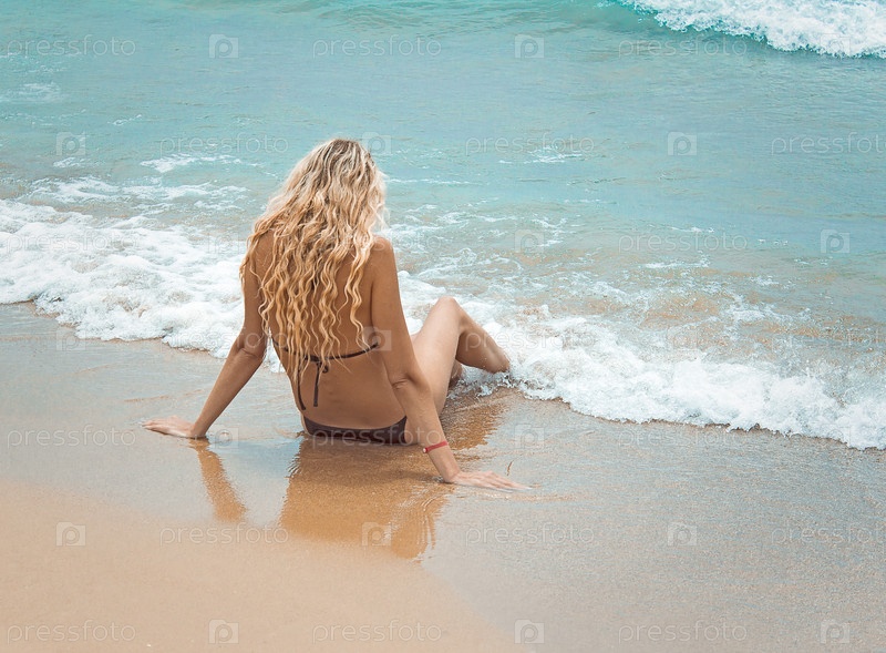 Девушка сидит на берегу моря