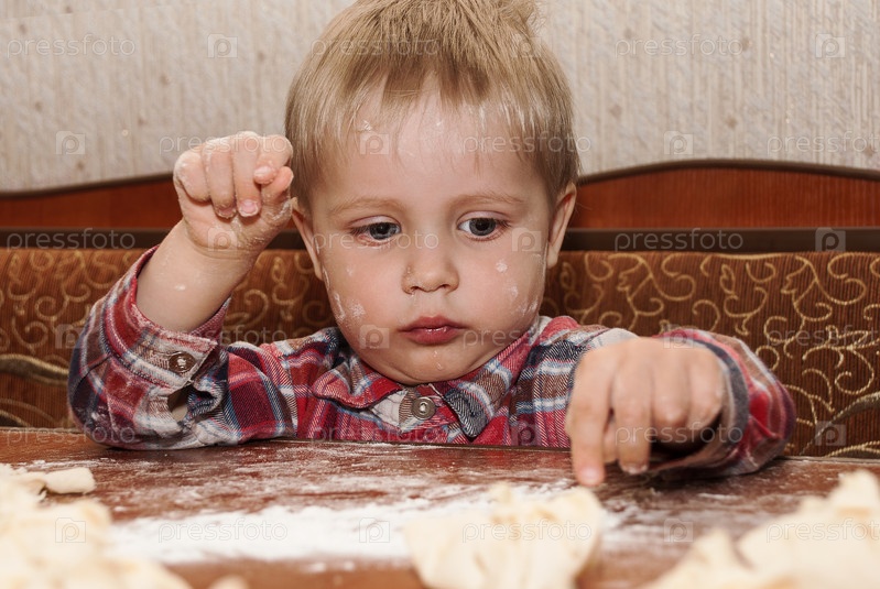 Ребенок играет с тестом