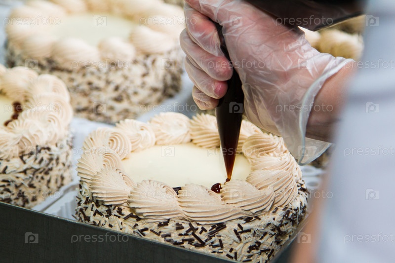 Шеф-повар выдавливает крем