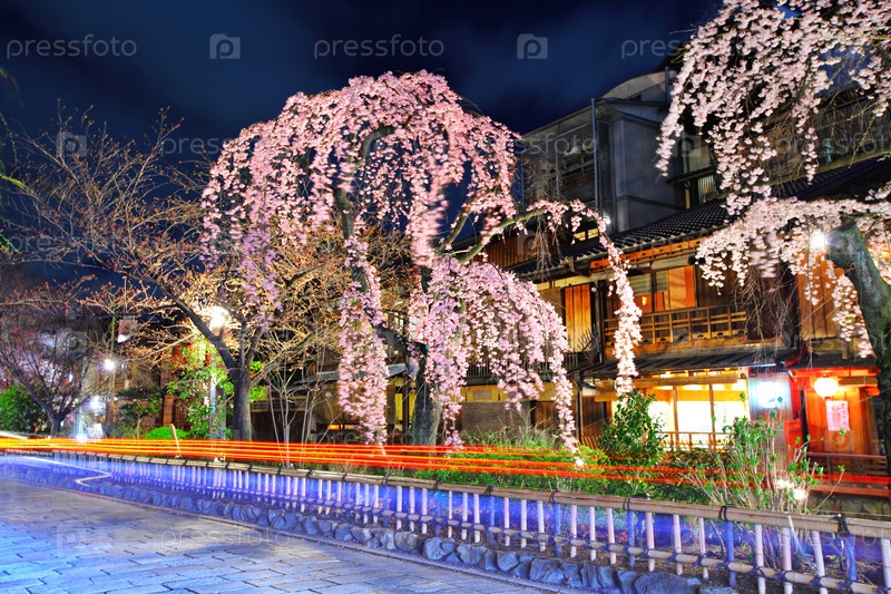 Цветущая сакуа ночью
