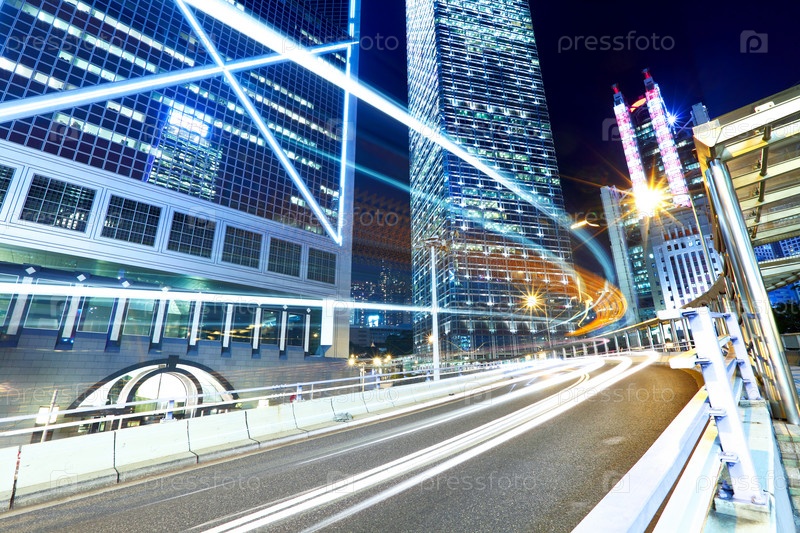 Оживленное движение в Гонконге ночью