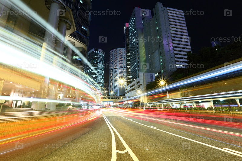 Оживленное движение в Гонконге ночью