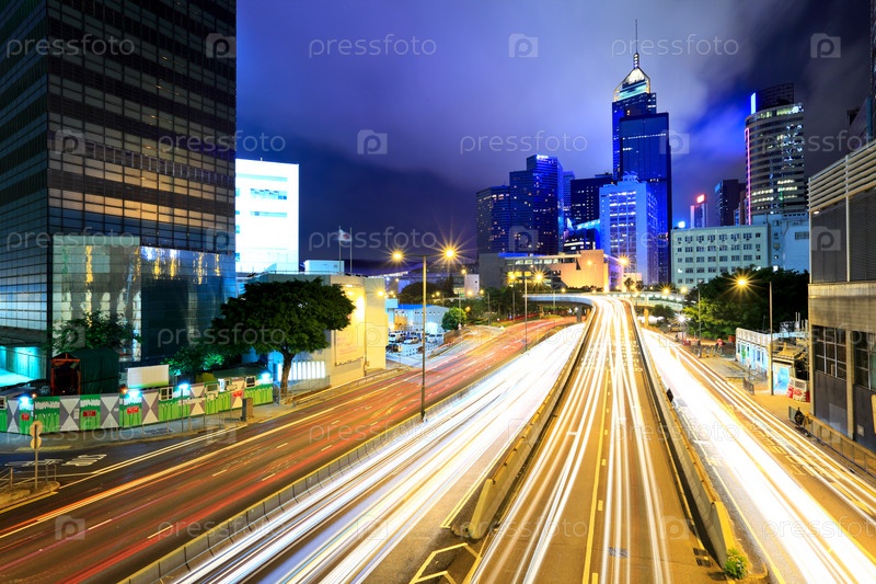 Оживленное движение в Гонконге ночью