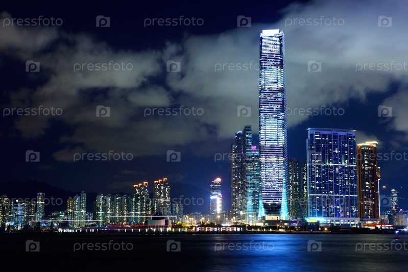 Город Гонконг ночью