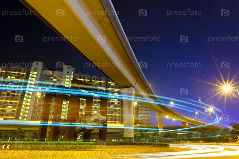 Автомобильное движение в ночном Гонконге