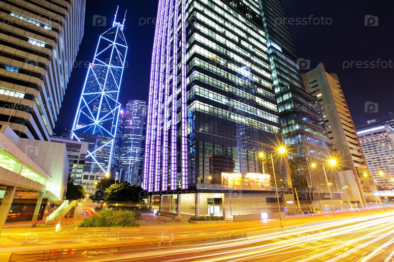 Автомобильное движение в ночном Гонконге