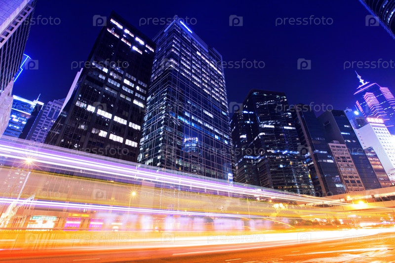 Автомобильное движение в ночном Гонконге