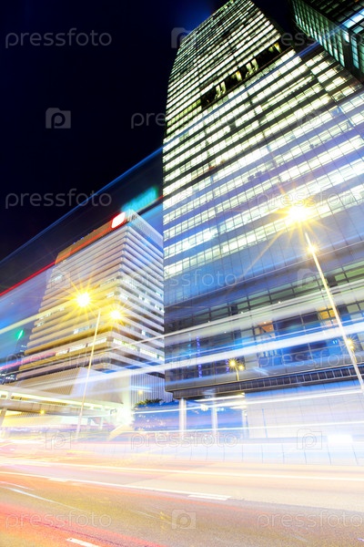 Автомобильное движение в ночном Гонконге