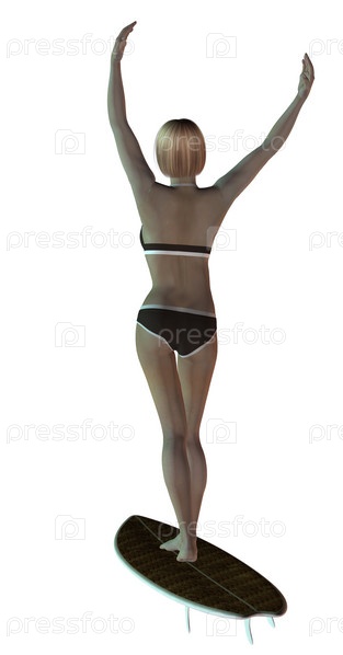 Блондинка на доске для серфинга