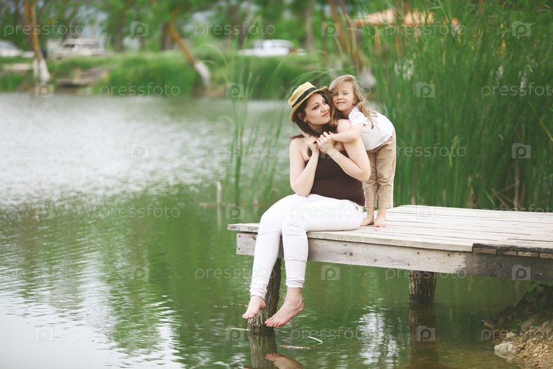 Мать с дочерью на пруду