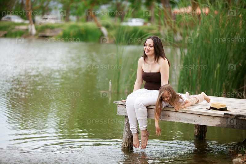 Мать с дочерью у пруда