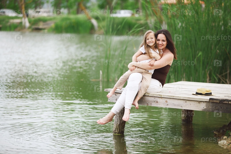 Мать с дочерью у пруда
