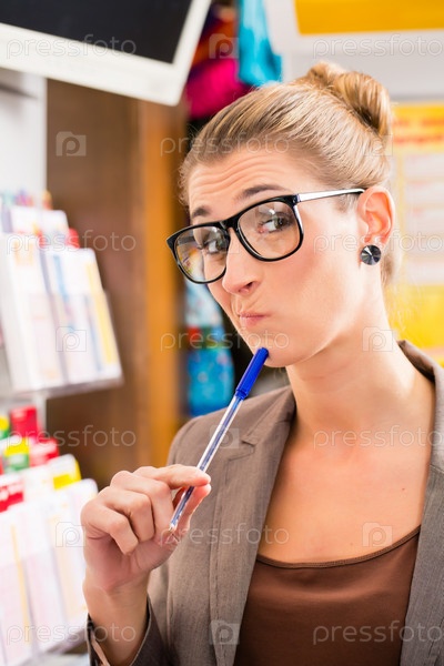 Молодая женщина в магазине лотерейных билетов