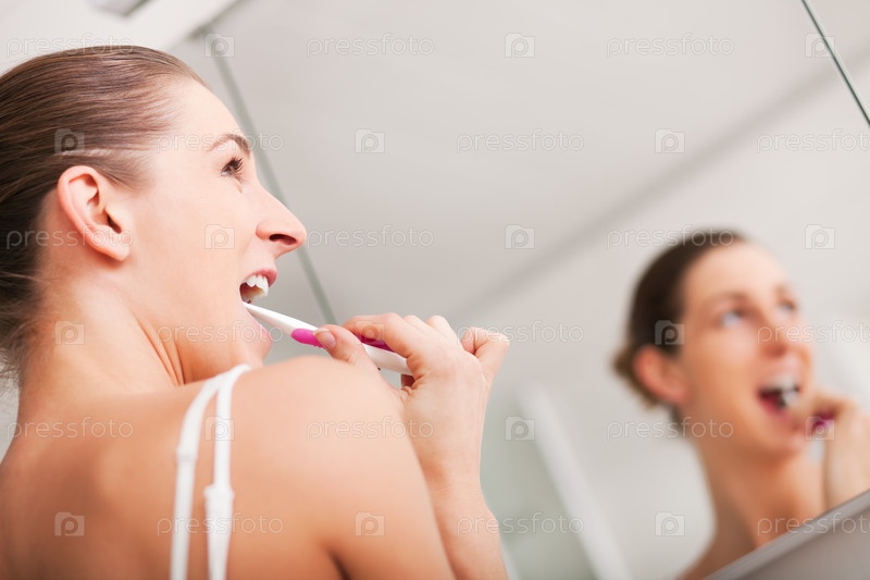 Молодая женщина чистит зубы