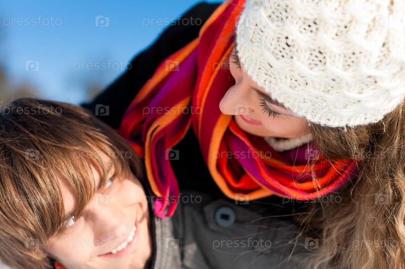 Мужчина и женщина на зимней прогулке