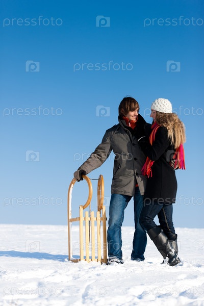 Мужчина и женщина на зимней прогулке