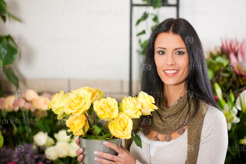 Флорист в цветочном магазине