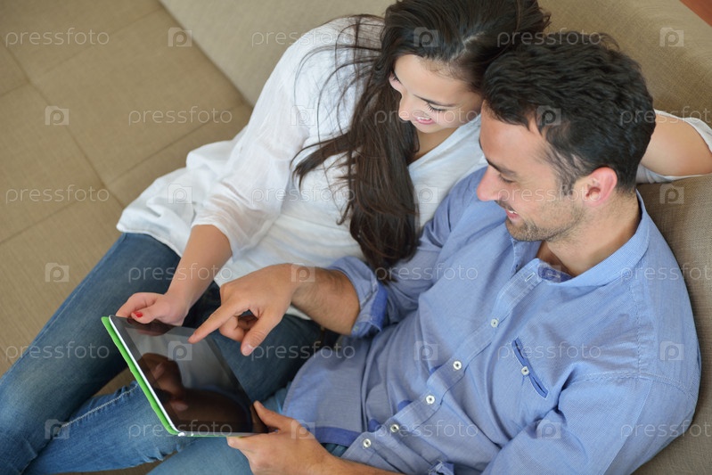 Пара с планшетом на диване