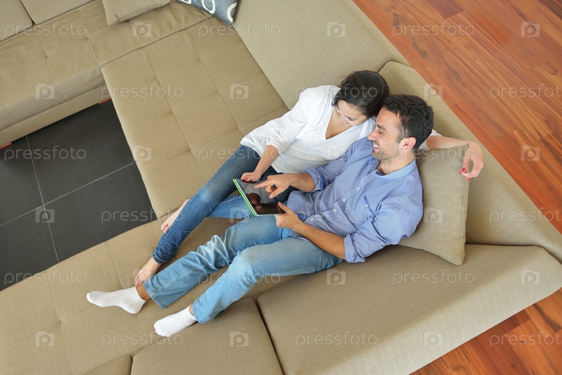 Пара с планшетом на диване
