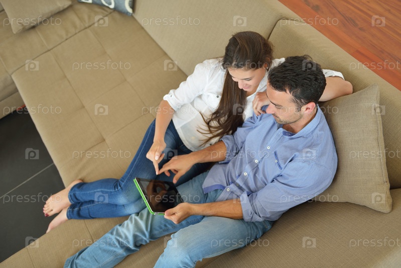 Пара с планшетом на диване