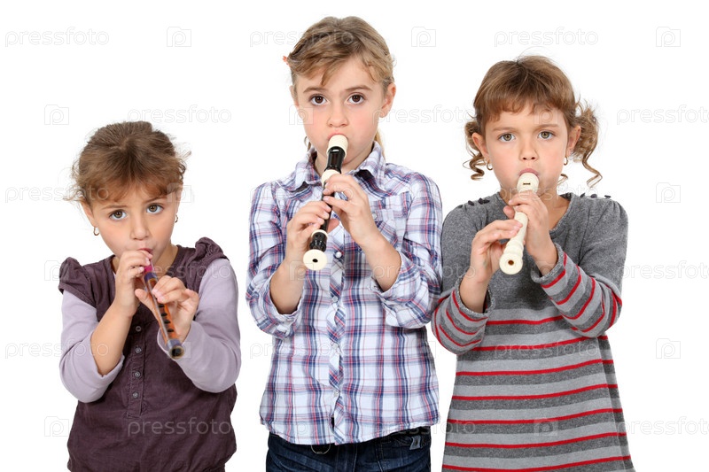 Три маленькие девочки играют на флейте