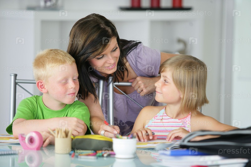 Брат и сестра делают домашнее задание