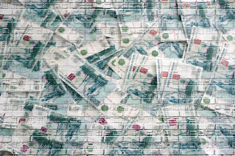 Нарисованные на стене бумажные купюры достоинством в одну тысячу рублей