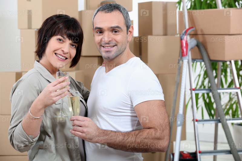 Счастливая пара в новой квартире