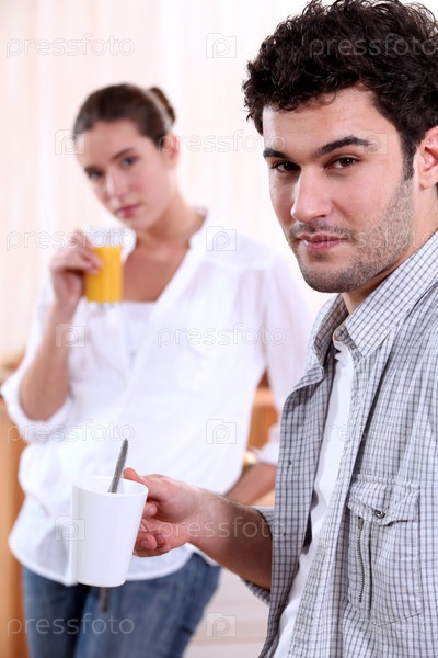 Пара завтракает дома