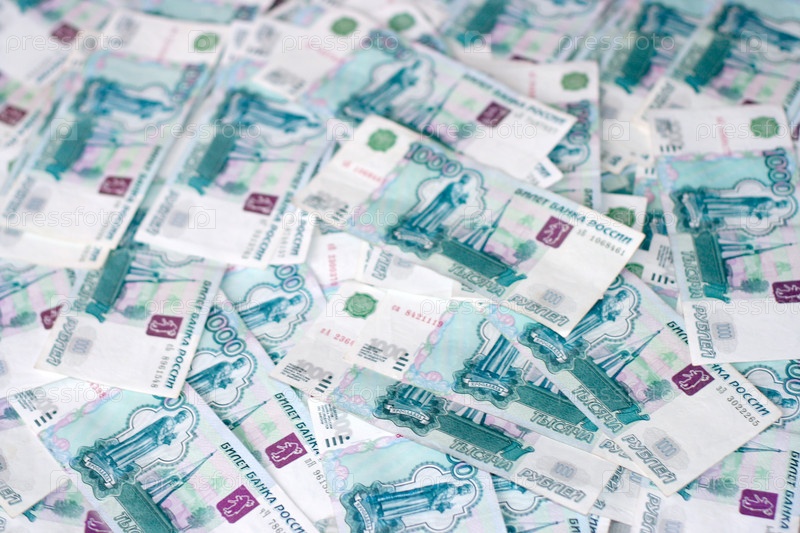 Денежные купюры достоинством в одну тысячу рублей
