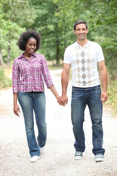 Пара гуляет в лесу