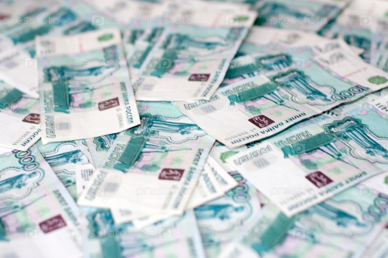 Денежные купюры достоинством в одну тысячу рублей