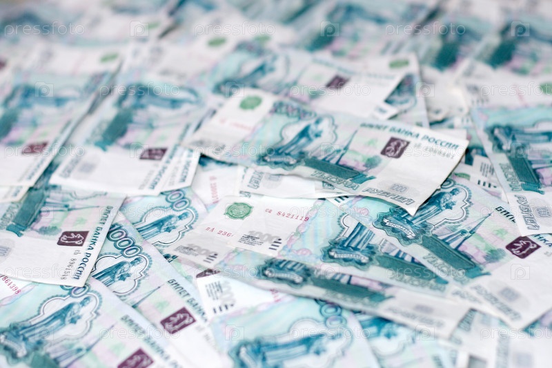 Денежные купюры достоинством в одну тысячу рублей